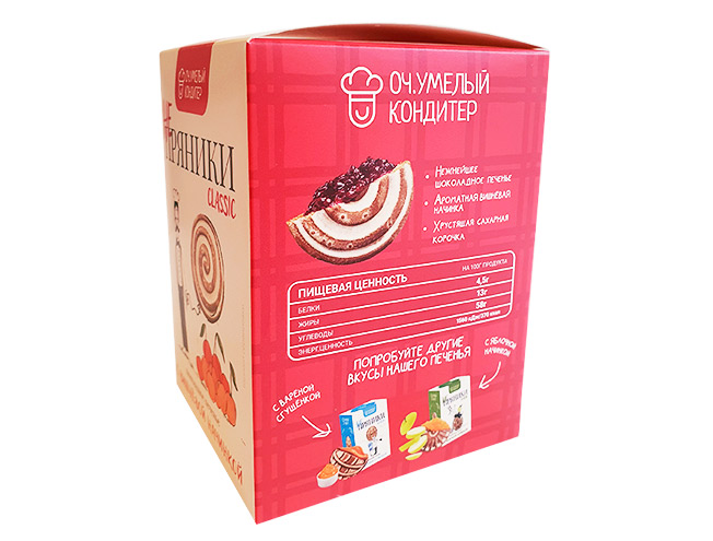 Выбирая НЕ ПРЯНИКИ classic с вишнёвым ароматом, вы обеспечиваете своих клиентов привлекательным и вкусным шоколадным печеньем, которое обладает уникальным сочетанием вкусов и приятной текстурой, оставаясь при этом доступным по цене.