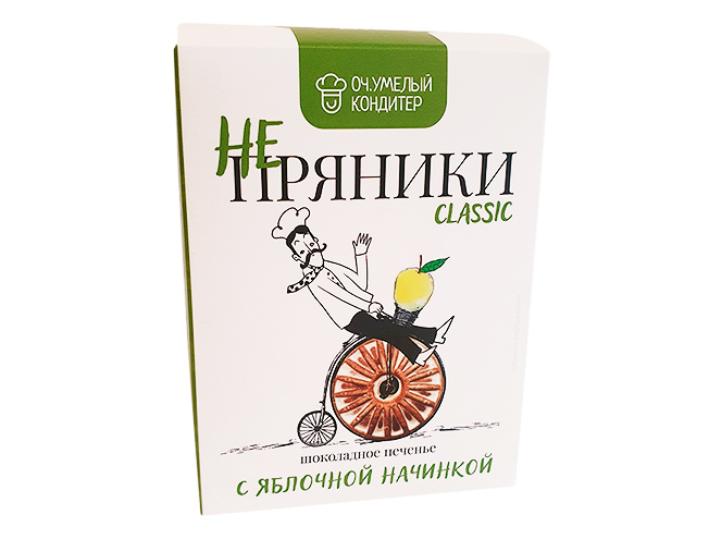 Мы рады предложить вам печенье шоколадное в индивидуальной упаковке - НЕ ПРЯНИКИ classic с нежной яблочной начинкой.